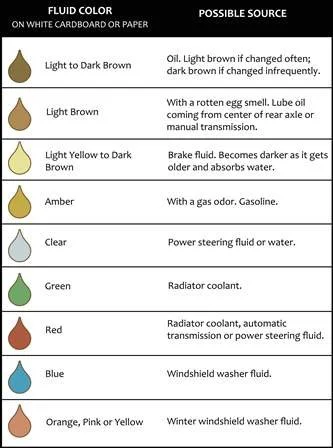 Brake Fluid: Clear or slightly yellow, posing a serious safety risk.